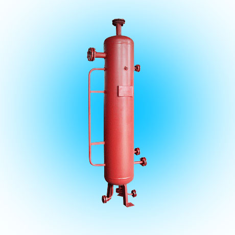 氨制冷系統(tǒng)中冷器在工作時,低壓級壓縮機(jī)排出的氨氣進(jìn)中冷器內(nèi),與節(jié)流后的氨液混合、洗滌,被完全冷卻成中間壓力下的干飽和蒸汽,經(jīng)傘形擋板阻擋、分離夾帶的液滴,由出氣口進(jìn)入高壓級壓縮機(jī)。同時氨制冷系統(tǒng)低壓級排氣中夾帶的潤滑油被分離出來并沉積于中冷器底部。