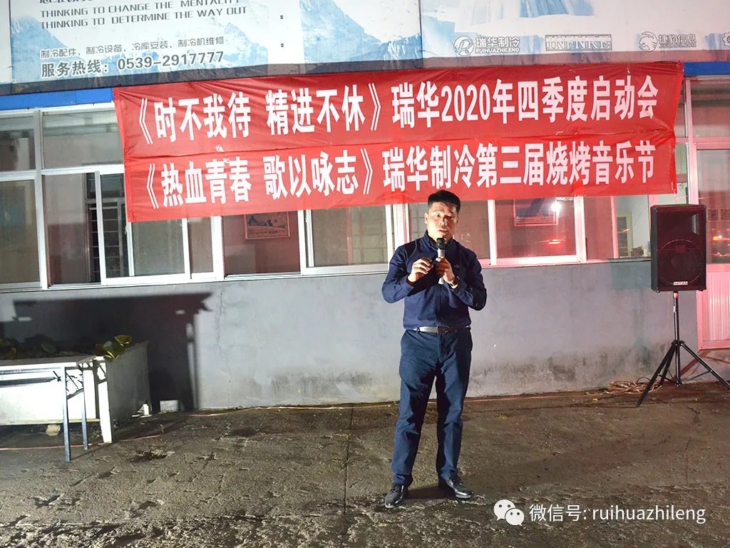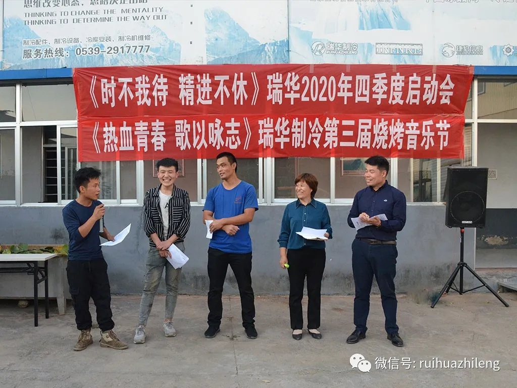 2020年10月9日,結束8天的國慶中秋長假,瑞華制冷迎來了返工第一天。上午,大家忙著處理假期內的部分工作;下午,來到倉儲中心開啟下午的活動。分別進行了熱身游戲、第二屆配貨比賽、四季度啟動會與第三屆K歌燒烤音樂節(jié)活動。大家共同度過了美好的一天,為國慶長假畫上了圓滿的句號,同時開啟了四季度大幕。