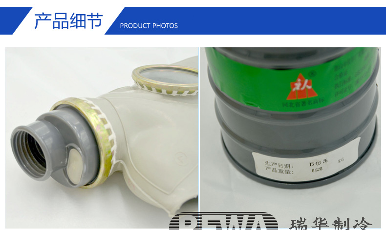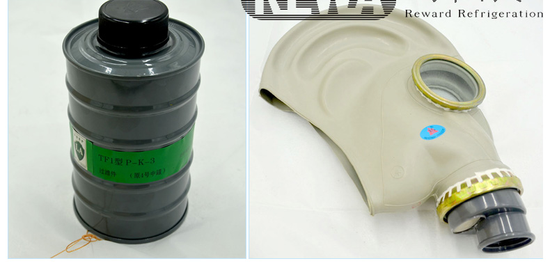唐人牌防氨用4號罐防毒面具 材料:天然橡膠,鏡片為防沖擊鏡片 使用時間:40分鐘左右(依使用環(huán)境與個人肺活量而定)